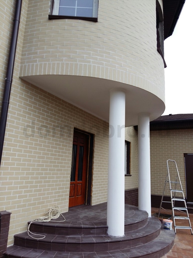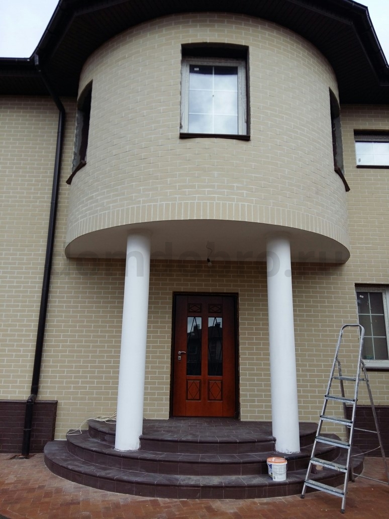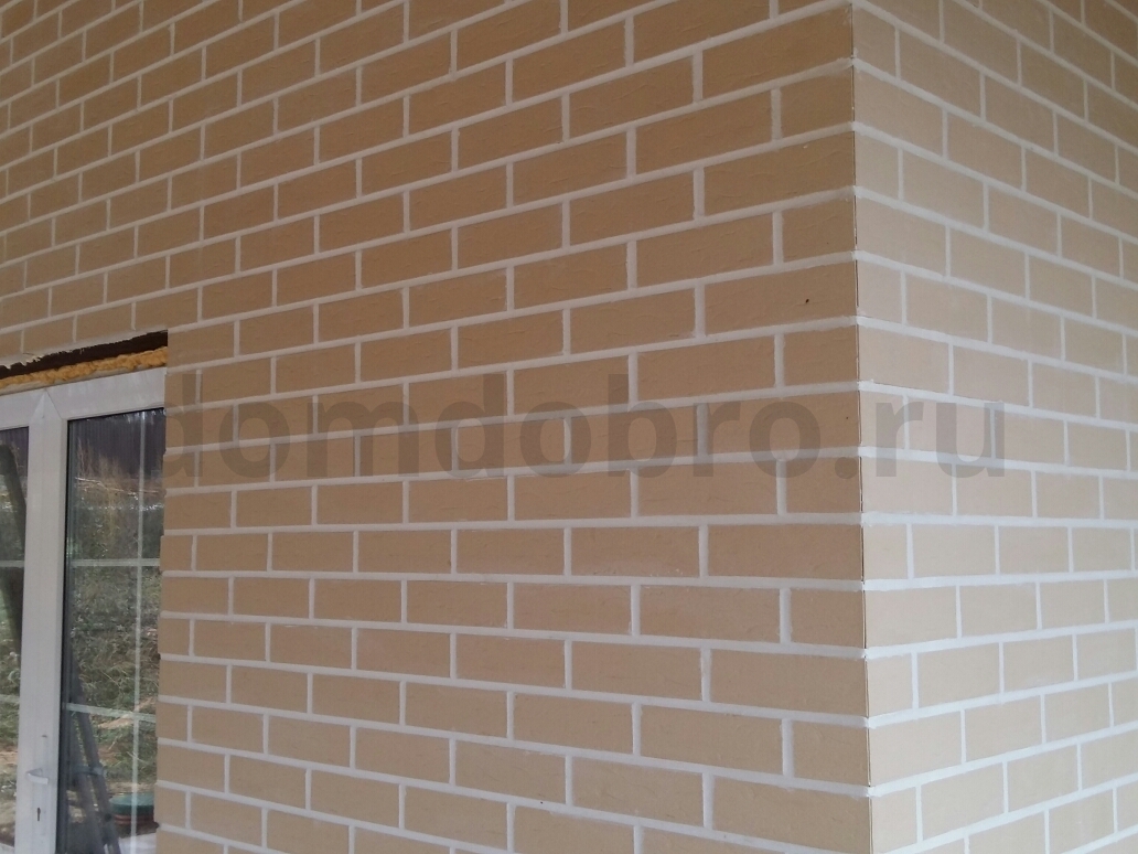 Фасад из клинкерной плитки ABC Objekta Beige двухэтажного дома с пристроем